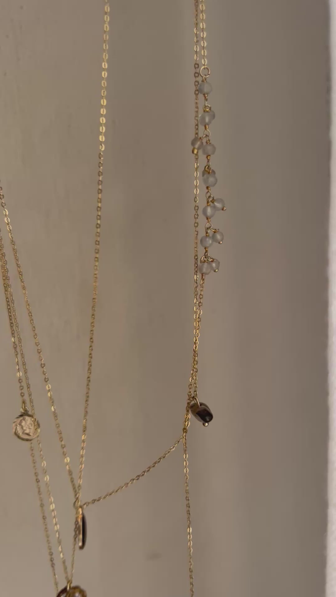 Set di 3 finissime collane di lunghezze a scalare impreziosite con micro ciondoli e pietre dure (quarzo fumo)